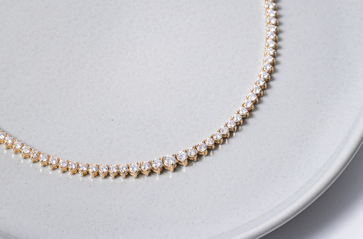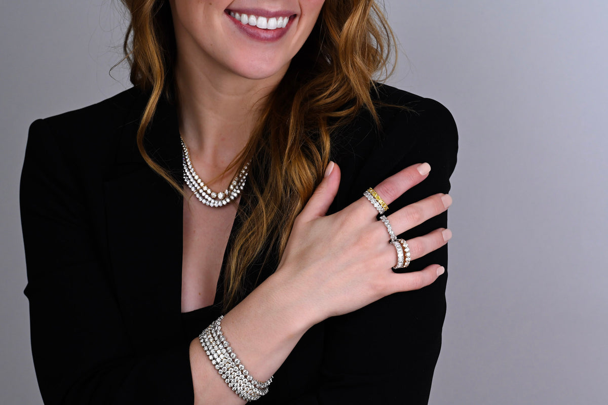 Each band is approximately .25 carats but varies slightly depending on ring size. As always we only use VS or better quality diamonds. 18k rose gold.